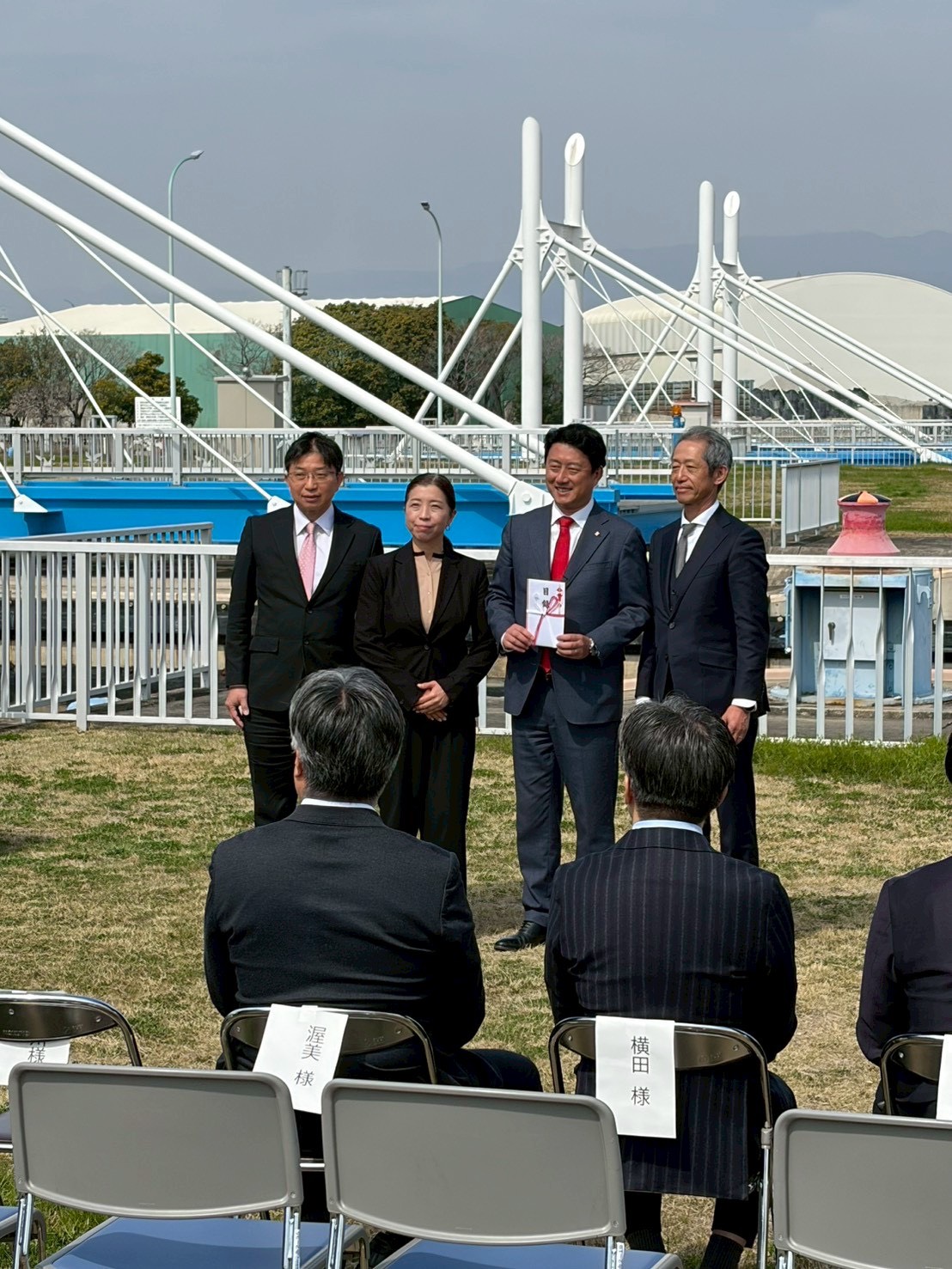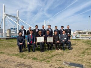 映画「あまろっく」の製作・上映により、広く本市の認知度やブランド力向上に貢献された功績を讃え、3月24日に映画の舞台ともなった「尼崎閘門(尼ロック)」にて、市長より感謝状の贈呈が行われました。